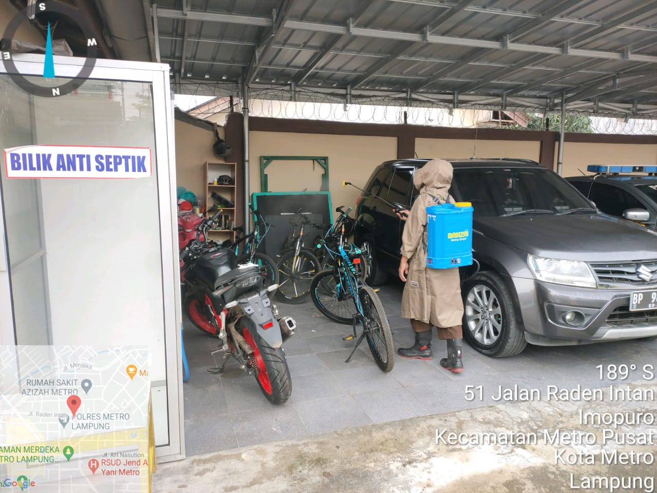 Kegiatan penyemprotan cairan desinfektan dilakukan oleh masing-masing personil rutin seminggu sekali mencakup Gedung Mako Polres Metro dan Polsek, Ruang Kerja dan Asrama atau rumah dinas Polres Metro danm Polsek jajaran.